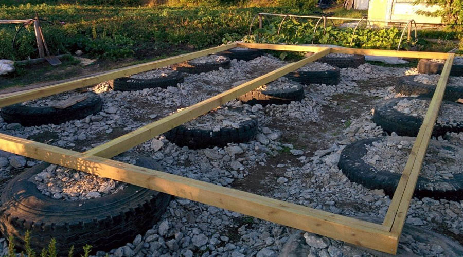 Фундамент из шин построить довольно просто.