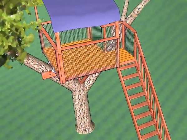 Чрезвычайно важно сделать правильный выбор дерева для основания домика, на котором строится конструкция. Если дерево крупное, раскидистое, можно разместить конструкцию между ветвями на любой высоте.