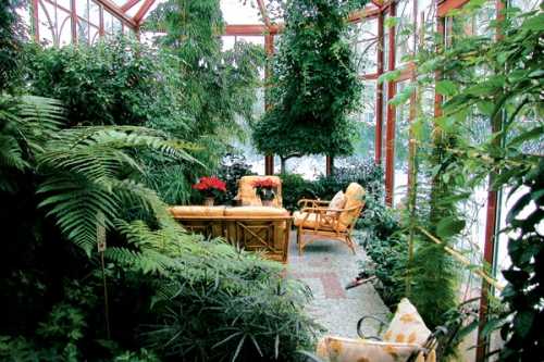 В обогреваемых зимних садах даже в холодное время года, уютно устроившись в кресле, можно любоваться зелеными растениями.