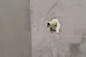 Но, трещины и неровности могут быть и на бетонной стене. Если перепады неровностей составляют более 3 см, необходимо штукатурить стены для того, чтобы минимизировать расход клея. Кроме того, если не оштукатурить поверхность с перепадом неровностей более 5 см., есть вероятность, что плитка со временем осыплется. После этого стену опять необходимо прогрунтовать.