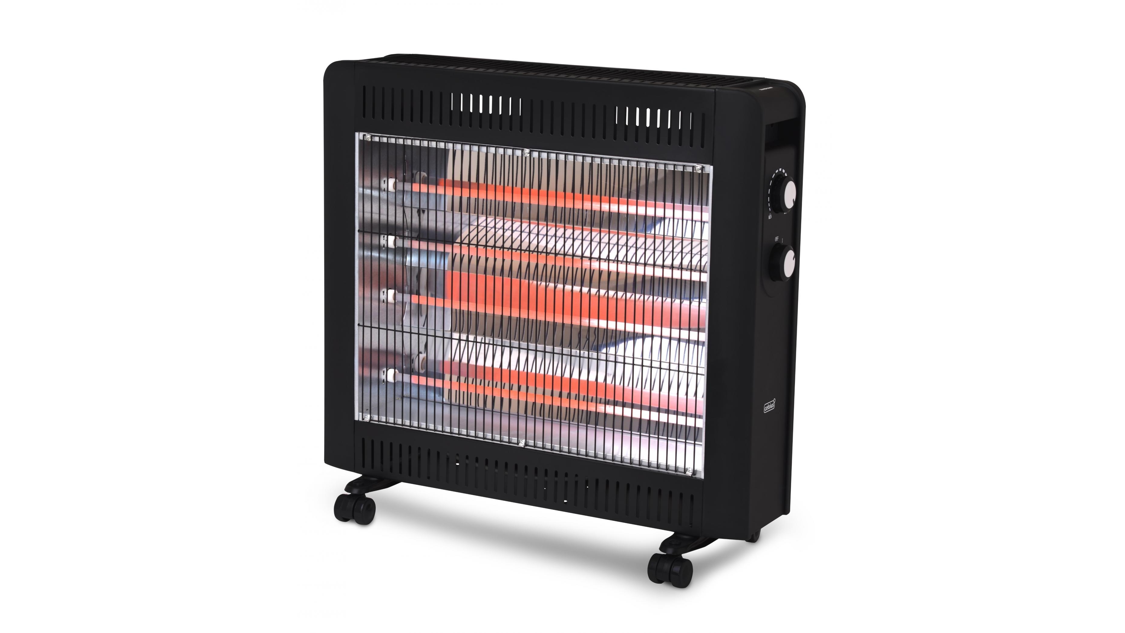 Комплектуется устойчивыми ножками и колесами, что позволяет использовать кварцевый обогреватель как стационарный либо мобильный источник тепла