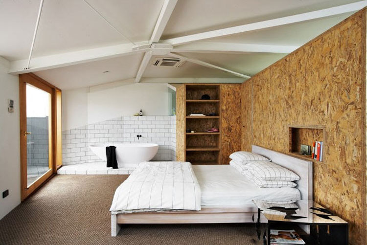 Во-вторых, чтобы изменить планировку комнат, можно смонтировать перегородки из ОСБ. Для этого используется установка на деревянный или металлический профили. Подобным образом крепят гипсокартон. Отличием перегородок из ОСБ является стойкость этого материала к деформации, поэтому такие элементы интерьера не прогибаются под тяжестью собственного веса и надежнее защищены от трещин и других повреждений. Перегородка ОСБ на деревянном профиле