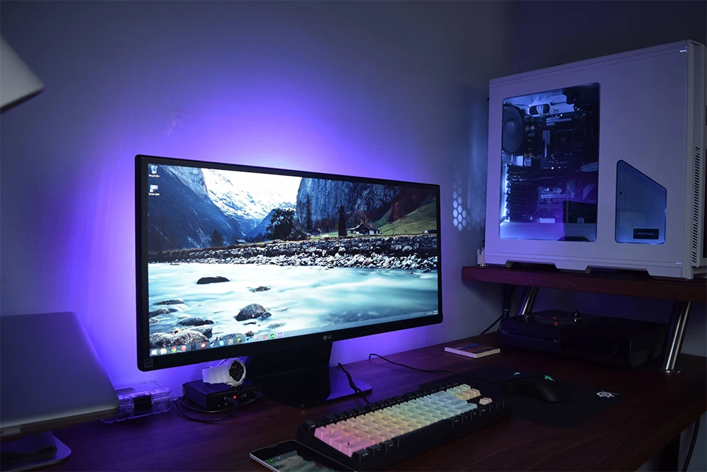 Если вы готовы к тому, чтобы ваш монитор и другие компьютерные периферийные устройства светились от окружающего света, обратите внимание на стартовый комплект LS100 Smart Lighting Starter Kit.