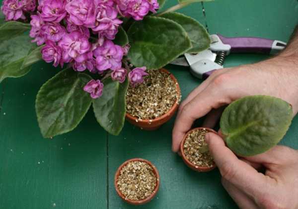 Укоренение листа фиалки в агровермикулите ― один из самых популярных способов размножения этого домашнего цветка. Листочки сажают в небольшою емкость с влажной слюдой средней или мелкой фракции и накрывают пленкой. Через несколько дней они пускают корешки. Укоренять листы фиалки в грунт лучше, когда корни подрастут.